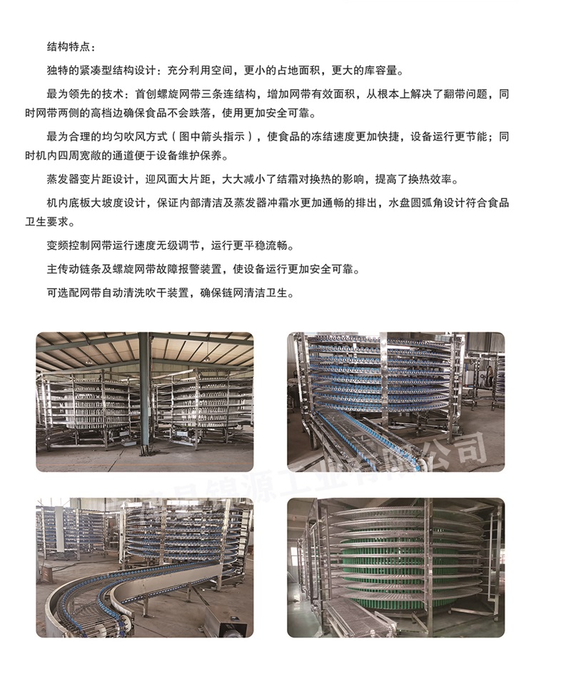 3.我廠可根據(jù)用戶的產(chǎn)量身訂做,打造經(jīng)濟(jì)實(shí)惠的非標(biāo)螺旋塔,可大大提高生產(chǎn)效率。螺旋冷卻塔選用不銹鋼螺旋網(wǎng)帶載體,網(wǎng)帶寬度300-900mm,層間距及層數(shù)依產(chǎn)量定制,冷卻時(shí)間20-120分鐘.冷卻產(chǎn)量大,可直接冷卻漢堡,吐司,甜面包,也可帶盤冷卻月餅,奶香包等.定制靈活,依據(jù)場(chǎng)地和產(chǎn)能設(shè)計(jì)直徑和網(wǎng)帶.單塔為上進(jìn)下出或下進(jìn)上出。
