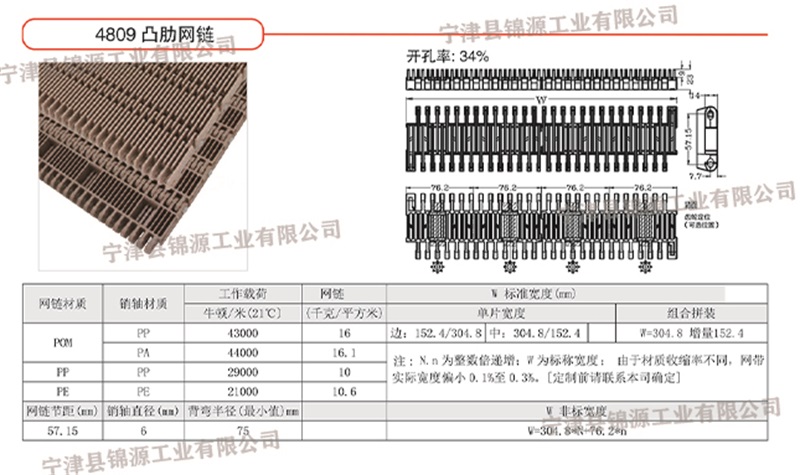 節(jié)距57.15mm 材質(zhì)PP、POM 厚度23.8mm 開孔率34%