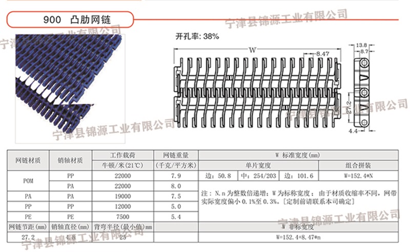 節(jié)距27.2mm 塑料網(wǎng)帶材質(zhì):pom, pp, nylon、、、等