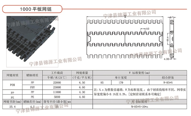 塑料網(wǎng)帶是利用工程塑料制作的鏈板拼裝而成的,模塊式網(wǎng)帶以互鎖方式或砌磚方式相互交錯(cuò),并由全長(zhǎng)銷桿組裝在一起,這種設(shè)計(jì)從根本上提高了傳送帶的強(qiáng)度。擋板和側(cè)板也可以用鉸接銷互鎖,成為輸送帶整體部件之一。塑料網(wǎng)帶形式多樣,拼裝靈活,更換方便。有開孔形式、平板、凸筋、滾珠、防滑等多種形式。適用于豬、羊、雞、鴨屠宰分切加工、膨化食品生產(chǎn)線、水果分級(jí)、包裝線、水產(chǎn)加工生產(chǎn)線、速凍食品生產(chǎn)線、電池制造生產(chǎn)、飲料制造業(yè)、制罐工業(yè)、農(nóng)業(yè)加工業(yè)、化工業(yè)、電子業(yè)、橡塑膠生產(chǎn)業(yè)、化妝品業(yè)、一般輸送作業(yè)。